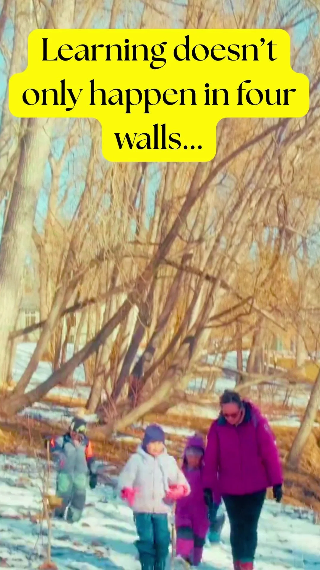 “At Nature Kindergarten, my child’s days are filled with hands-on, whole-body experiences like climbing trees, tobogganing, and discovering different parts of Confederation Park through playful inquiry, alongside seventeen other students, two teachers, and a classroom aide. When I pick them up, their snowsuit is most-often soaked through. It’s from “jumping in puddles,” They explain. My child tells stories about seeing coyotes, climbing hills, and walking to the duck pond or fairy forest. They ask me questions like, “how will the leaves grow back in the spring?” and “where do ladybugs sleep in the winter?” My child
